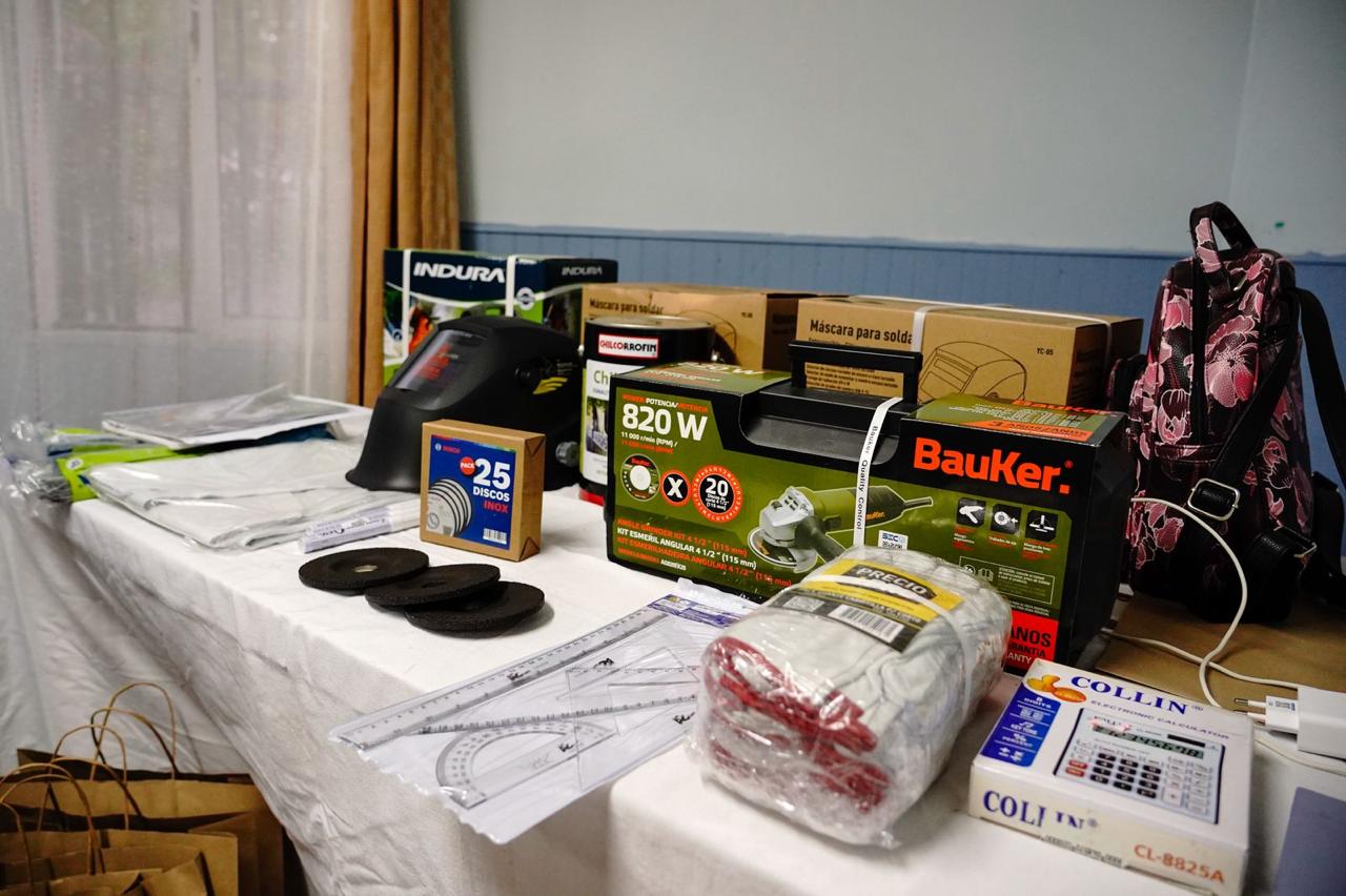 Los recursos entregados, cercanos a los 2 millones de pesos, permitieron la adquisición de kit de máquina de soldar, discos de corte metal, disco de pulir, lentes de seguridad, variedad de fierros, escuadras y artículos que permiten la realización de los talleres. Estos elementos han sido claves para conocer de manera concreta la manipulación de cada uno de ellos.