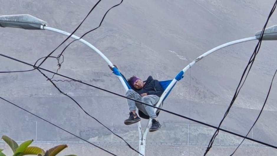 Hombre venezolano protagoniza extraño incidente en Iquique al dormir sobre un poste de alambrado público