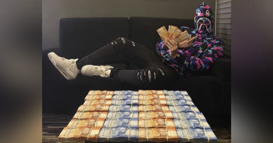 Además, subió un video donde aparece recostado sobre un sofá, con un polerón que cubre su rostro y contando un gran fajo de billetes de $20 mil pesos.